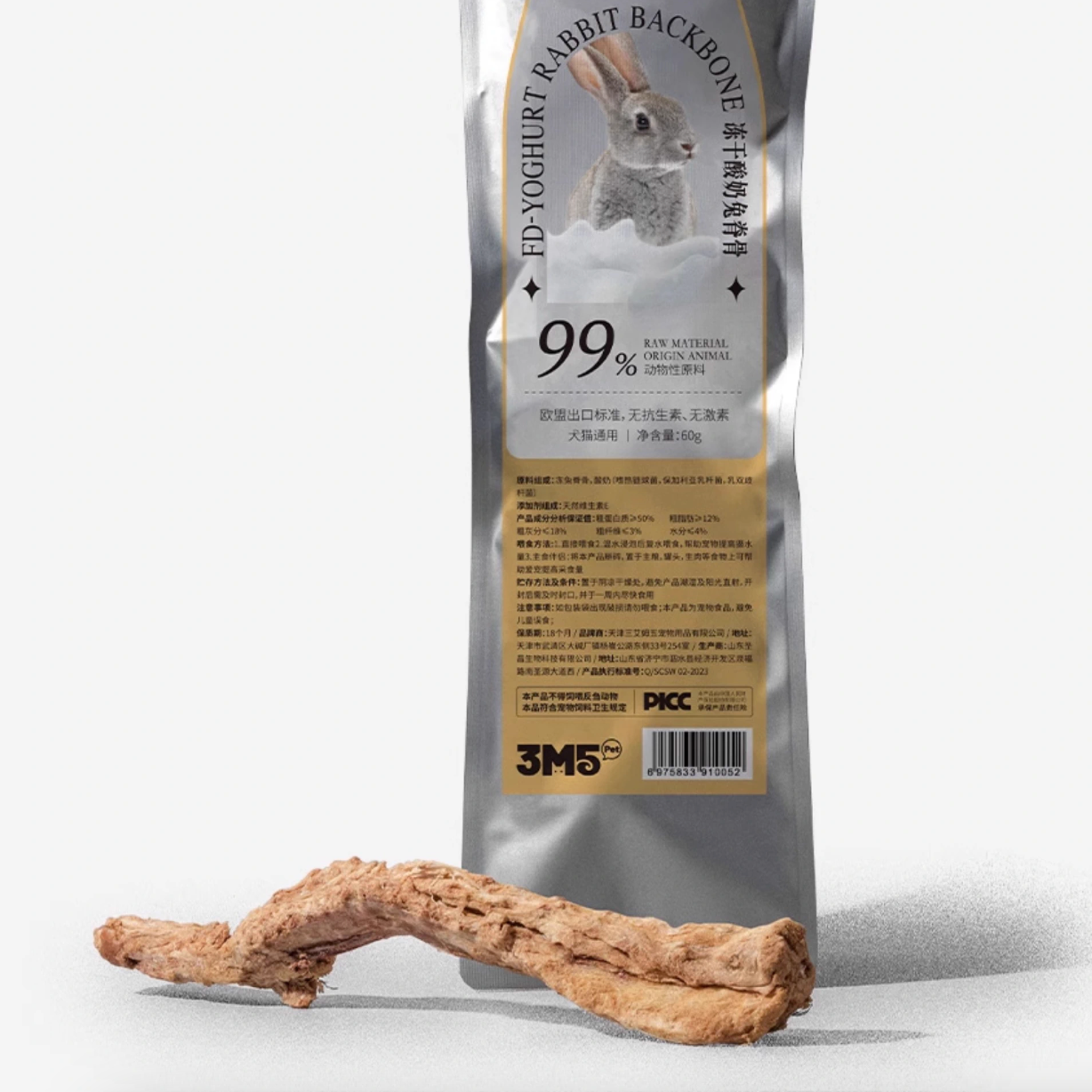 3M5 Freeze-Dried Rabbit Spine Treats | Natural Chew for for Cats | Supports Dental Health | 60g