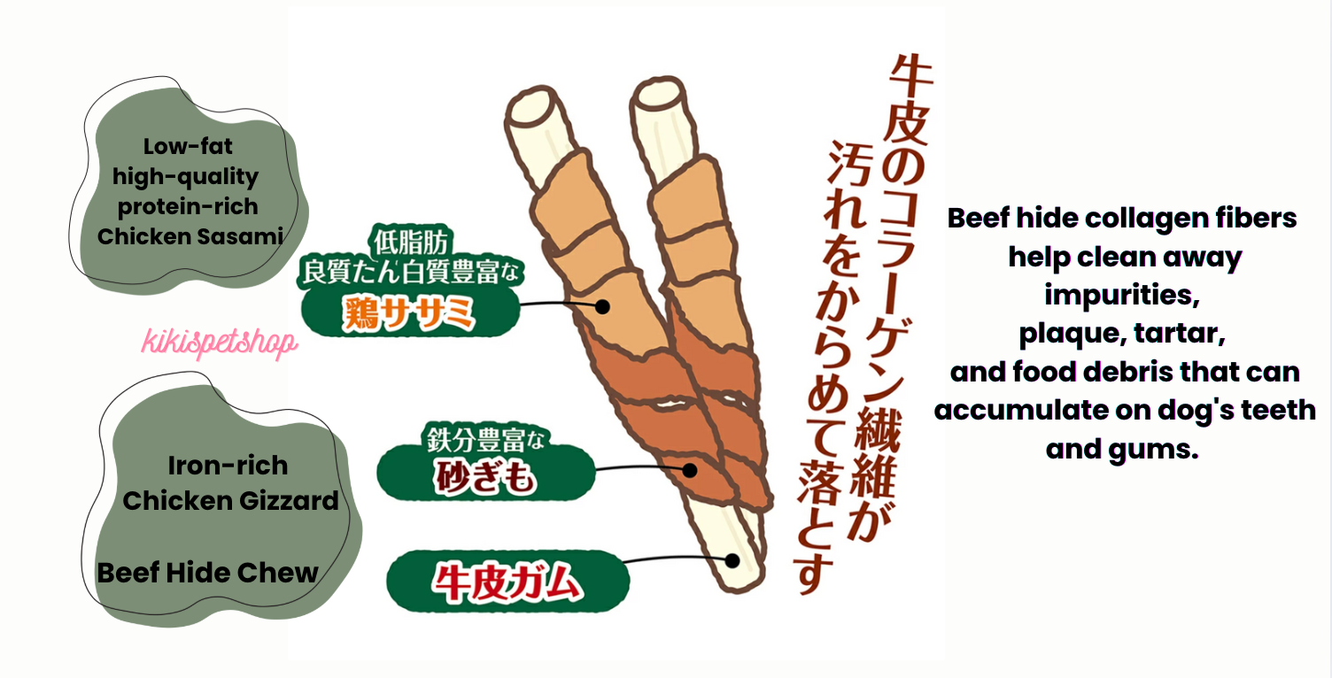 A delicious dental chew for dogs, wrapped with chicken breast and gizzard on ultra-thin beef hide.