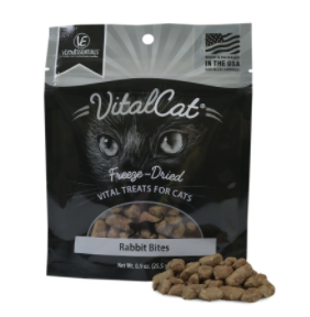 These treats will have your cats hopping with joy! Freeze-Dried Rabbit Bites are a great source of Vitamin A, Vitamin B6, taurine and more.